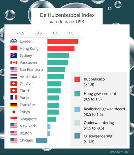 Voert Amsterdam het herstel aan van de Nederlandse huizenmarkt of is de hoofdstad een nieuwe zeepbel aan het opblazen? Volgens de Zwitserse bank UBS is er na Londen geen Europese huizenmarkt zo overspannen als de Amsterdamse. De UBS-barometer slaat uit naar 'overgewaardeerd' en niveau 'bubbelrisico' komt in zicht. Moeten Amsterdammers zich zorgen maken?