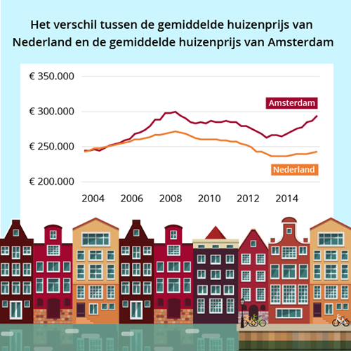 De ontwikkeling van de huizenprijzen in Amsterdam verloopt stormachtig in vergelijking met de rest van Nederland. In twee jaar tijd stegen de prijzen in Amsterdam met 18 procent. Huizen zijn amper op de markt of ze zijn alweer verkocht en eigenaren verkneukelen zich om het bedrag waarvoor de buurman zijn huis te koop heeft staan.