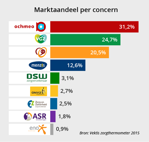 Bij het kiezen van de zorgverzekering 2016 heb je keus uit meer dan 50 zorgverzekeringen. Dat lijkt veel. In de praktijk zijn het merken van in totaal slechts 9 verzekeringsconcerns. In de afgelopen jaren zijn veel verzekeraars samengegaan. Dit tot ongenoegen van de politiek: verzekeraars zijn te groot en hebben te veel macht. Tijd om de markt op de schop te gooien. Of toch niet...?