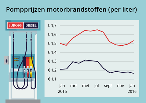Jouw voordeel zijn de lage prijzen aan de pomp. Met een benzineprijs van € 1,54 en dieselprijs van € 1,16 betaal je erg weinig voor een volle tank. Ook kun je de lage brandstofprijs indirect terugzien in goedkopere vliegtickets. Al hebben vliegtuigmaatschappijen vaak contracten voor langere termijn gesloten, waardoor je het voordeel pas later zou kunnen merken.
