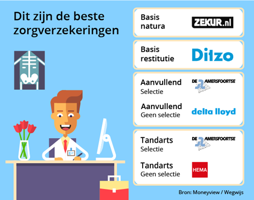 De ‘beste’ zorgverzekering komt van Zekur, onderdeel van Univé. Dat blijkt uit onderzoek van bureau Moneyview. Bij de vrije-keuze-restitutiepolissen komt Ditzo als winnaar uit de bus. Bij zowel de aanvullende verzekering én tandartsverzekering wint De Amersfoortse.