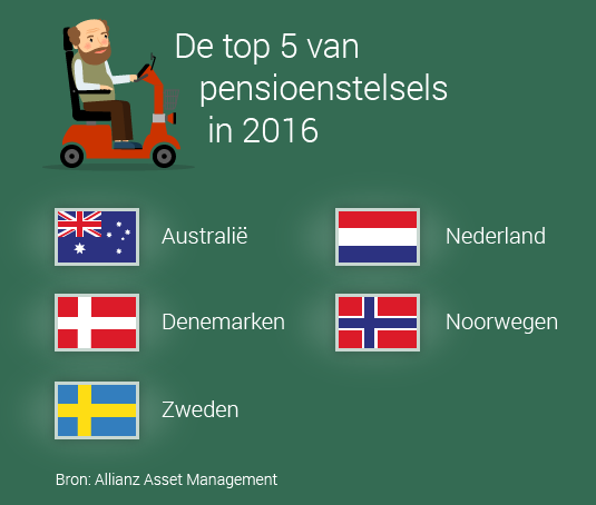 In dit geval was het Allianz dat de duurzaamheid van de verschillende pensioenstelsels onderzocht. Duurzaamheid heeft in dit geval niets te maken met windmolens of biogas, maar met houdbaarheid. Anders gezegd: kunnen we de huidige manier van pensioensparen en -uitkeren ook voor volgende generaties blijven volhouden?