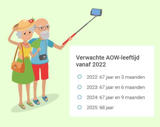 Het CBS heeft becijferd dat de levensverwachting toeneemt. De overheid moet daarom de AOW-leeftijd navenant laten stijgen, maar moet dat 5 jaar van tevoren aankondigen. De AOW-leeftijd is in 2022 dus 67 jaar en 3 maanden.