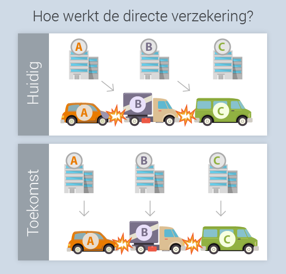 Zijn er al opwindende ideeën over de autoverzekering van de toekomst? Het enige dat in buurt komt is de zogenaamde directe verzekering. Die weinig sprankelende naam is in feite een autoverzekering zonder verkeersaansprakelijkheid. Heb je schade door een aanrijding? Dan wordt de schade vergoed door jouw eigen verzekeraar, ongeacht of er iemand anders aansprakelijk is.