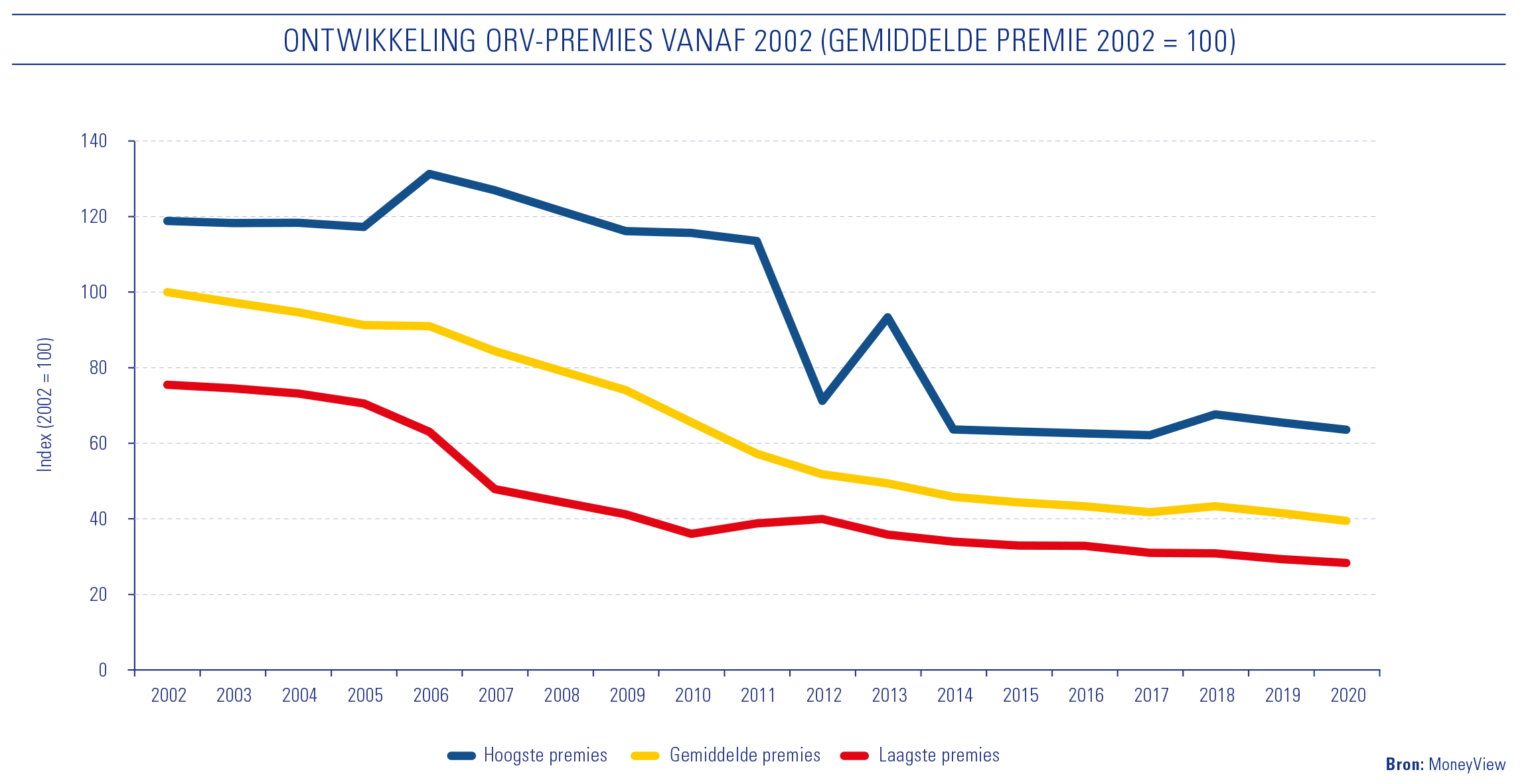 In vergelijking met 2017 werden in 2020 meer ORV’s afgesloten tegen hogere verzekerde bedragen. Bij verzekerde bedragen vanaf €275.000 is het aantal zelfs verdubbeld. Verzekeringen met een verzekerd bedrag vanaf €175.000 werden licht meer afgesloten. Een beperkte dekking was minder in trek.