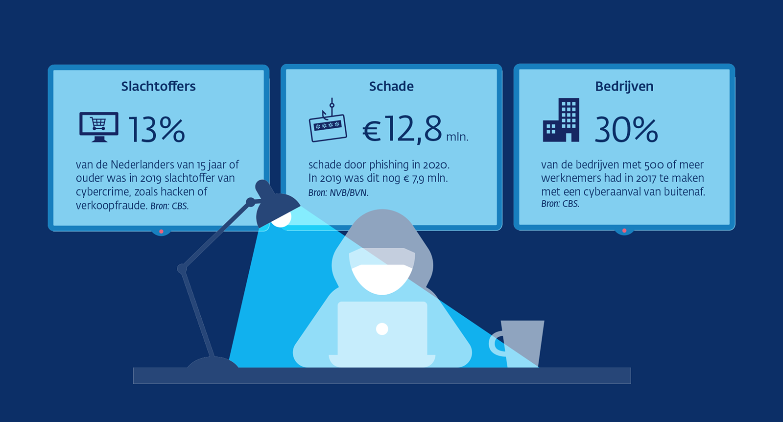 Maar liefst 13 procent van alle Nederlanders vanaf 15 jaar was bij de meest recente meting slachtoffer van cybercrime. Dit varieert van bestellingen bij een malafide webshop tot het plunderen van een betaalrekening. Welke methodes worden gebruikt bij deze vorm van criminaliteit en hoe kan je vooraf al onraad ruiken?