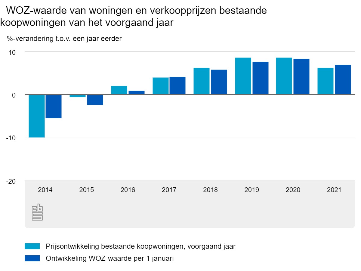 De gemeente heeft de taak om jaarlijks de WOZ-waarde van woningen vast te stellen. WOZ-waarden lopen ongeveer een jaar achter op de actuele prijs in de markt. Deze vertraging komt doordat 1 januari van het voorgaande jaar het peilmoment is bij het vaststellen van de WOZ waarde. Eigenlijk gaat de huidige waarde dus over de prijs die je gemiddeld op 1 januari 2020 betaalde voor een een huis.