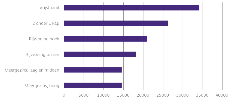 Gemiddelde kosten verduurzaming tot aardgasvrij naar type woning (in euro’s)