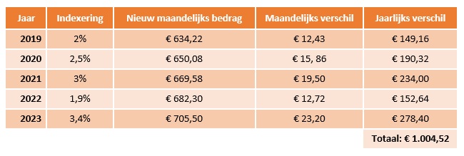 Jaarlijks stijgen de prijzen van de meeste producten en diensten. Wanneer je inkomen niet in hetzelfde tempo stijgt met deze inflatie, ga je er qua koopkracht op achteruit. Te ontvangen alimentatie is ook onderdeel van jouw inkomen. De overheid heeft voor 2023 een indexatie van 3,4% vastgesteld.